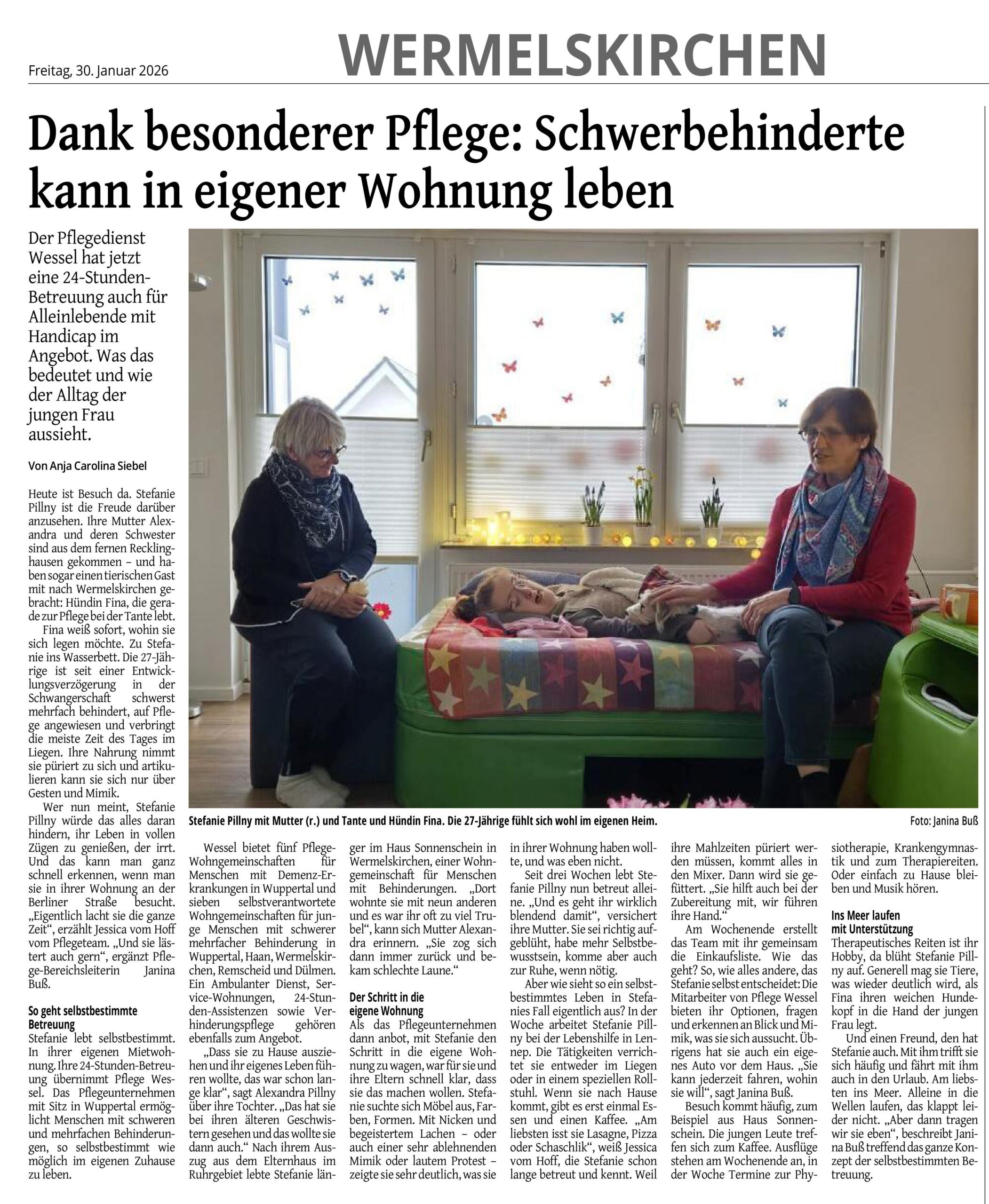 Dank besonderer Pflege: Schwerbehinderte kann in eigener Wohnung leben