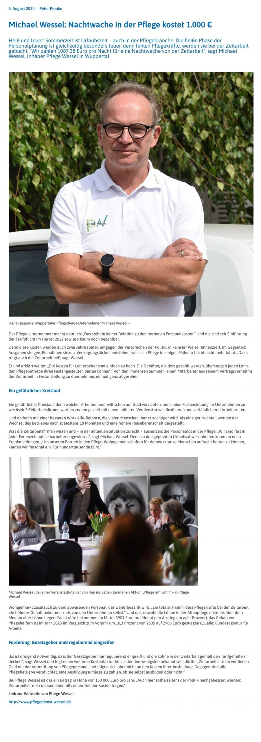 Michael Wessel: Nachtwache in der Pflege kostet 1.000 €