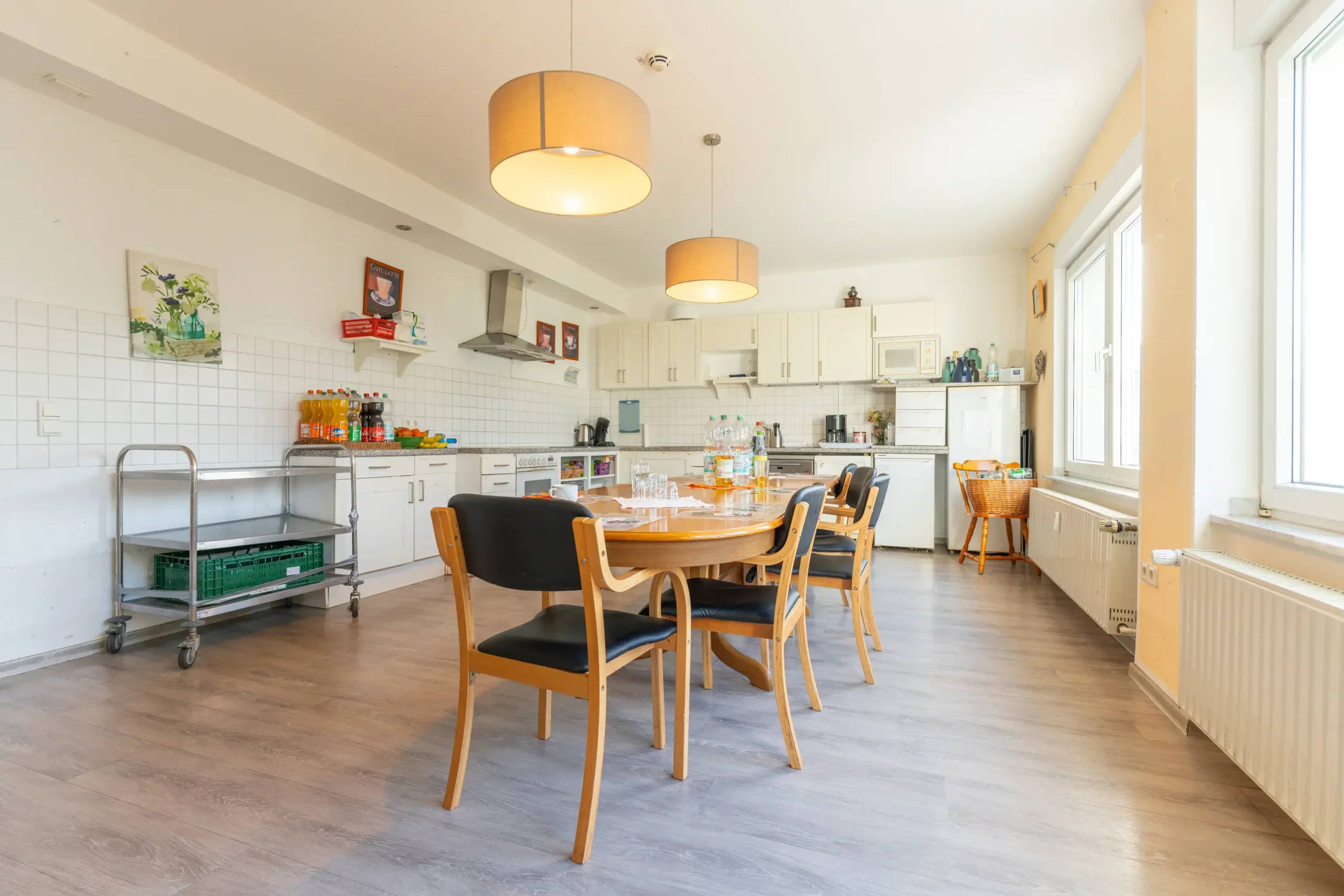 Tägliche Aktivitäten, Mahlzeiten und Begegnungen in großzügigen Gemeinschaftsräumen.