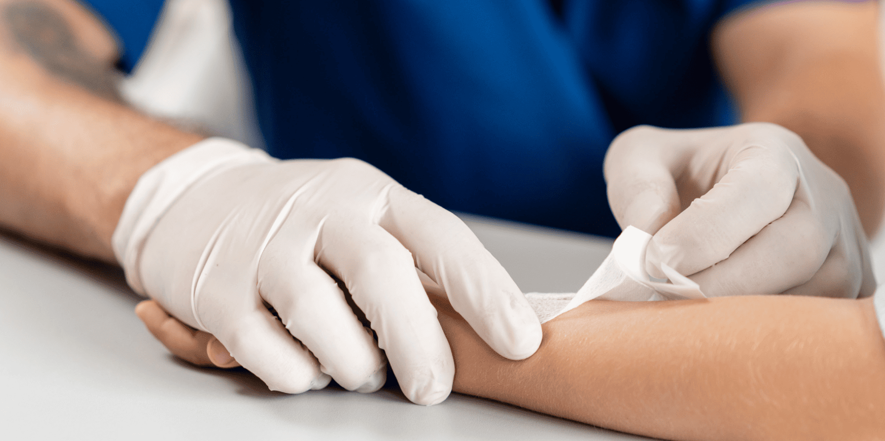 Professionelle Behandlung chronischer und schlecht heilender Wunden mit modernem Verbandsmaterial.